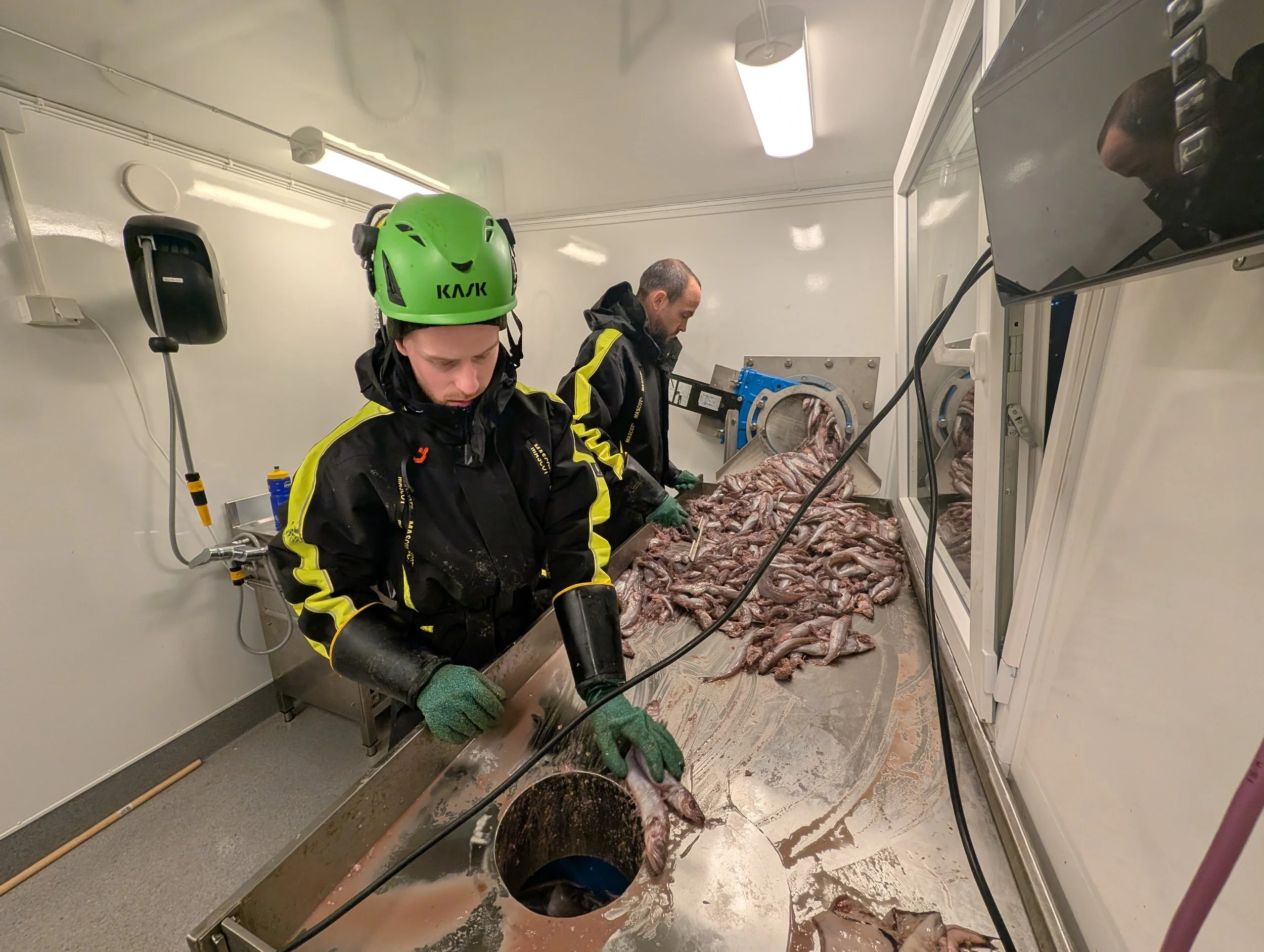 For å kunne arbeide effektivt med minst mulig personell, da vi ikke kan være til stede under hele leveringen, blir prøvene levert til en låsbar mottaks binge. Dette gjør at Fish Control tar én stor prøve i stedet for mange små. Prøveresultatet leveres til mottaket og Norges Sildesalgslag, som setter dette sammen på sluttseddel.